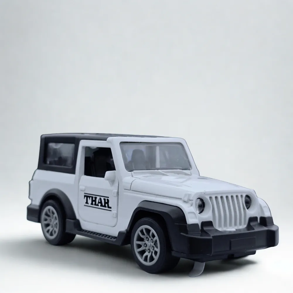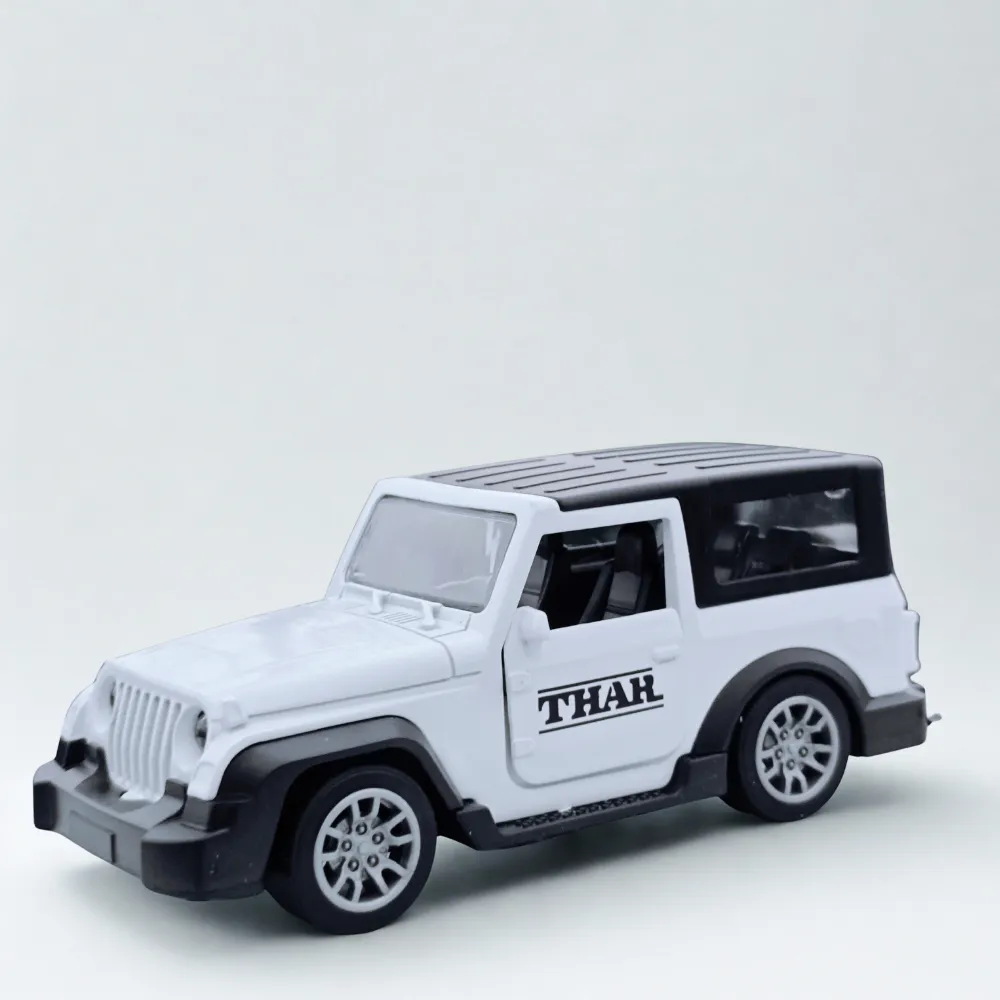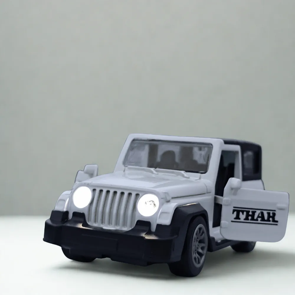 Take home the legendary Thar SUV in a stunning White Edition diecast model (1:32 scale). Made with diecast metal and ABS detailing, this premium toy car is designed to impress both collectors and kids.
