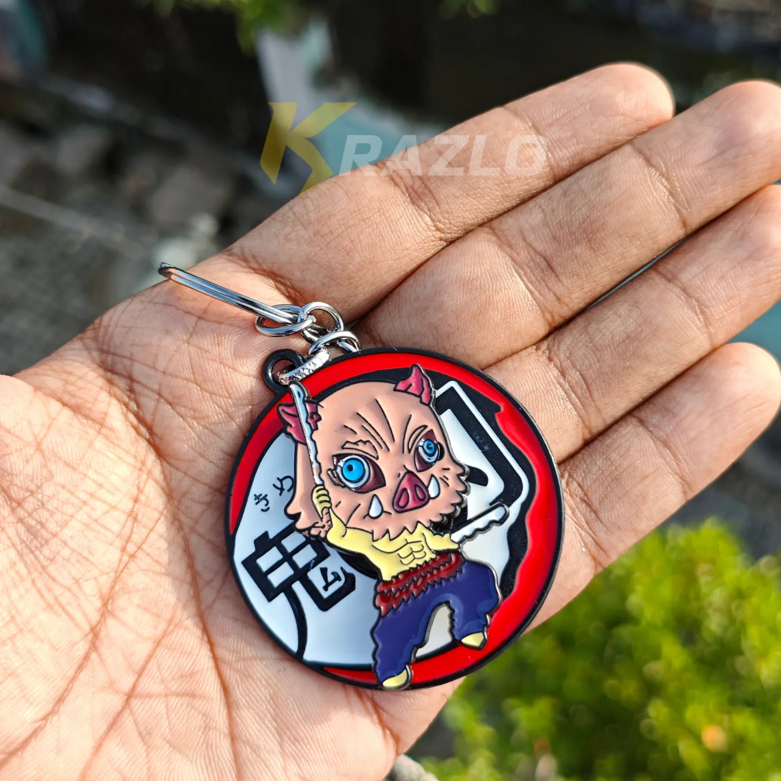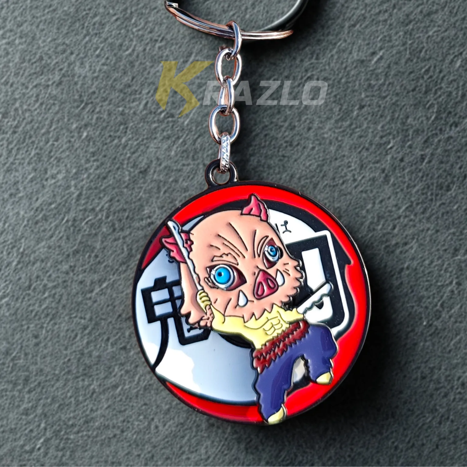 PIG ASSAULT! Charge into action with the Boar Mask Warrior Metal Keychain. Forged from rugged metal, this keychain captures the wild, untamed spirit of the legendary beast-breathing swordsman.