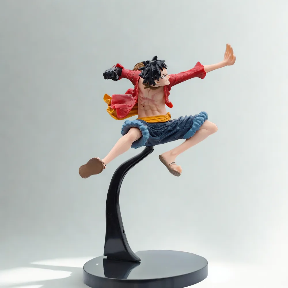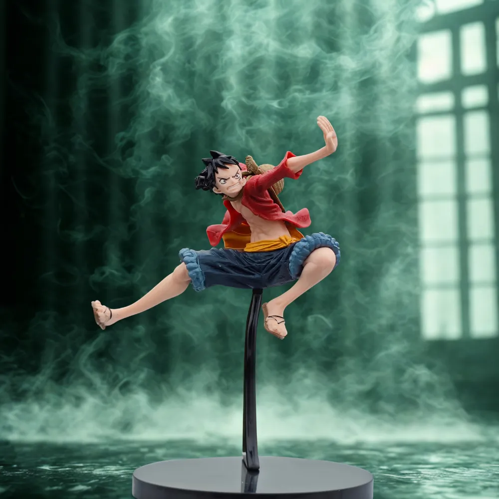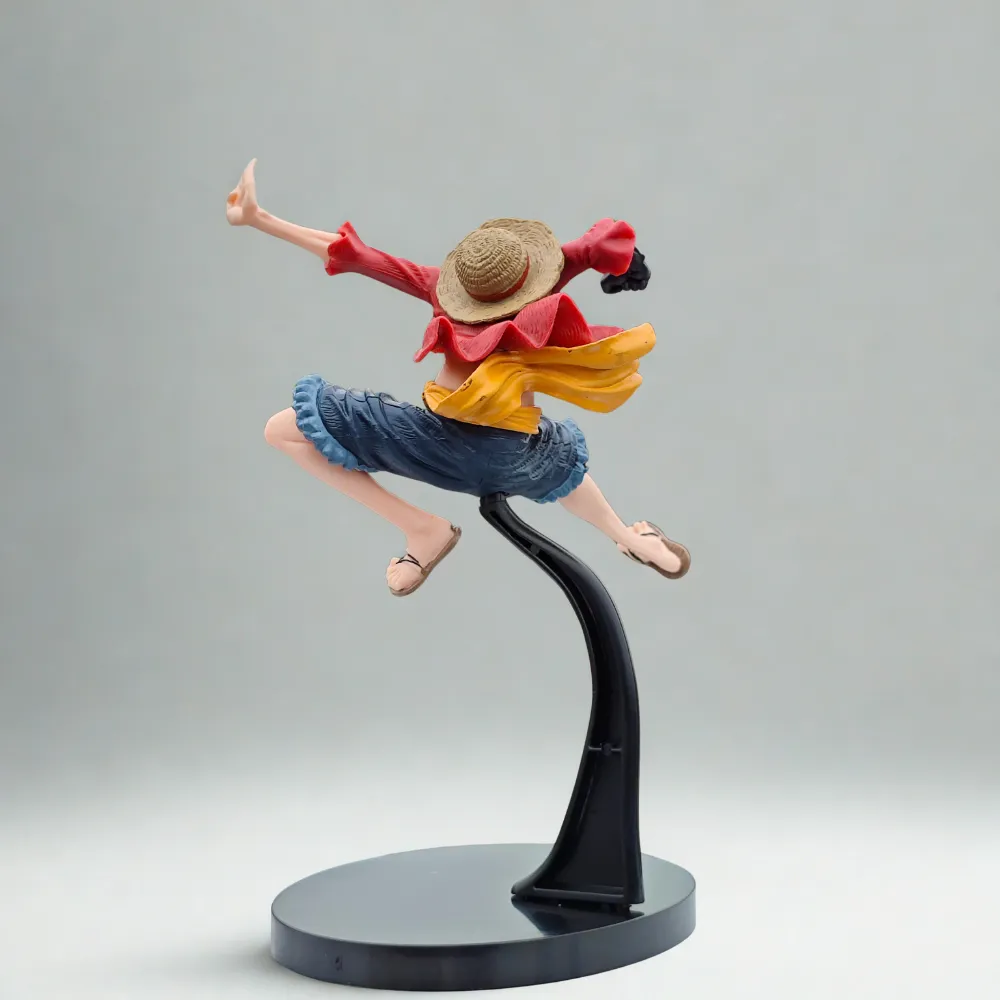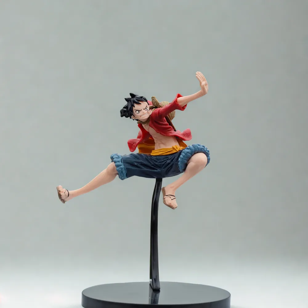 Bring action to your shelf with this 18cm straw hat pirate-inspired battle pose figurine. Capturing the spirit of adventure, the figure is designed in a dynamic mid-air kick stance, with flowing attire and fierce expression.