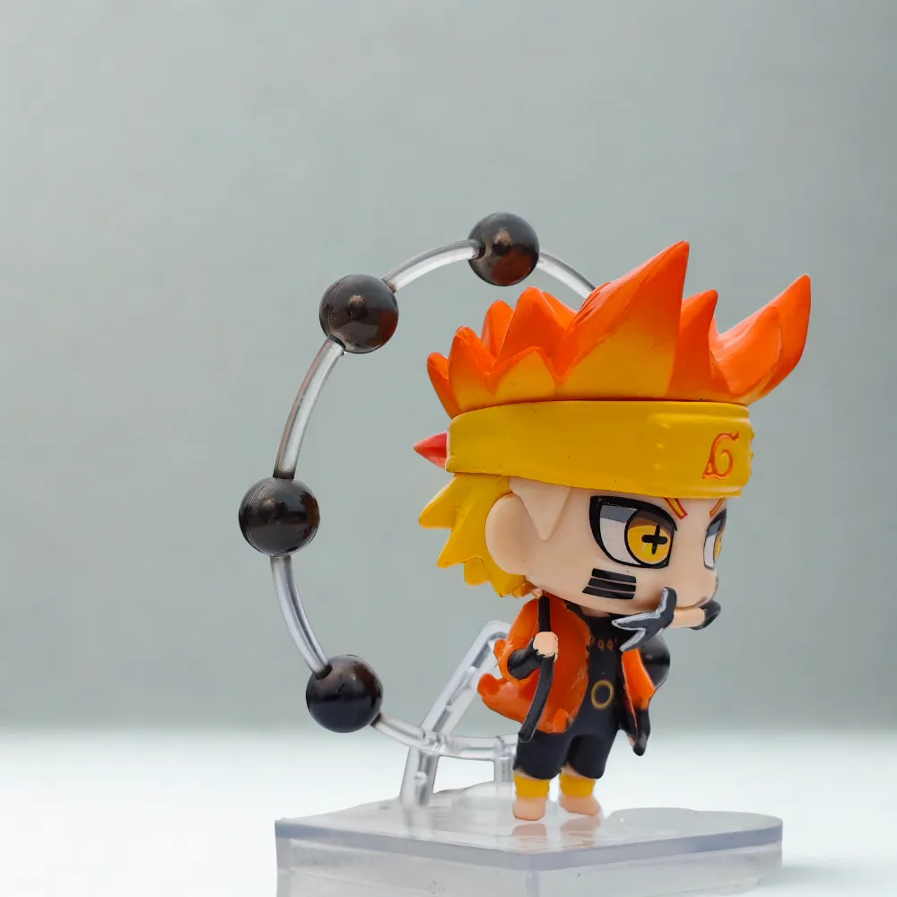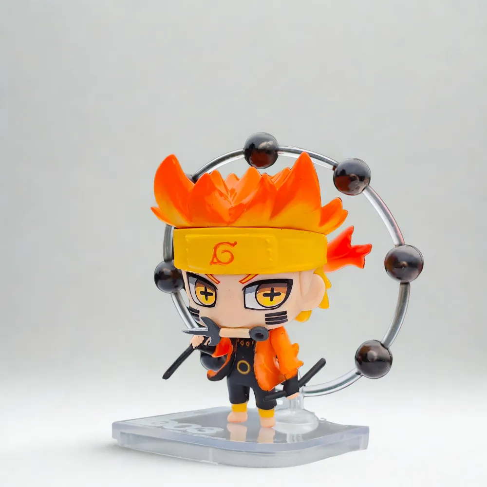 10cm fiery ninja-inspired figurine with glowing orange aura, detailed headband, and black energy orbs. A perfect collectible for anime action figure lovers.