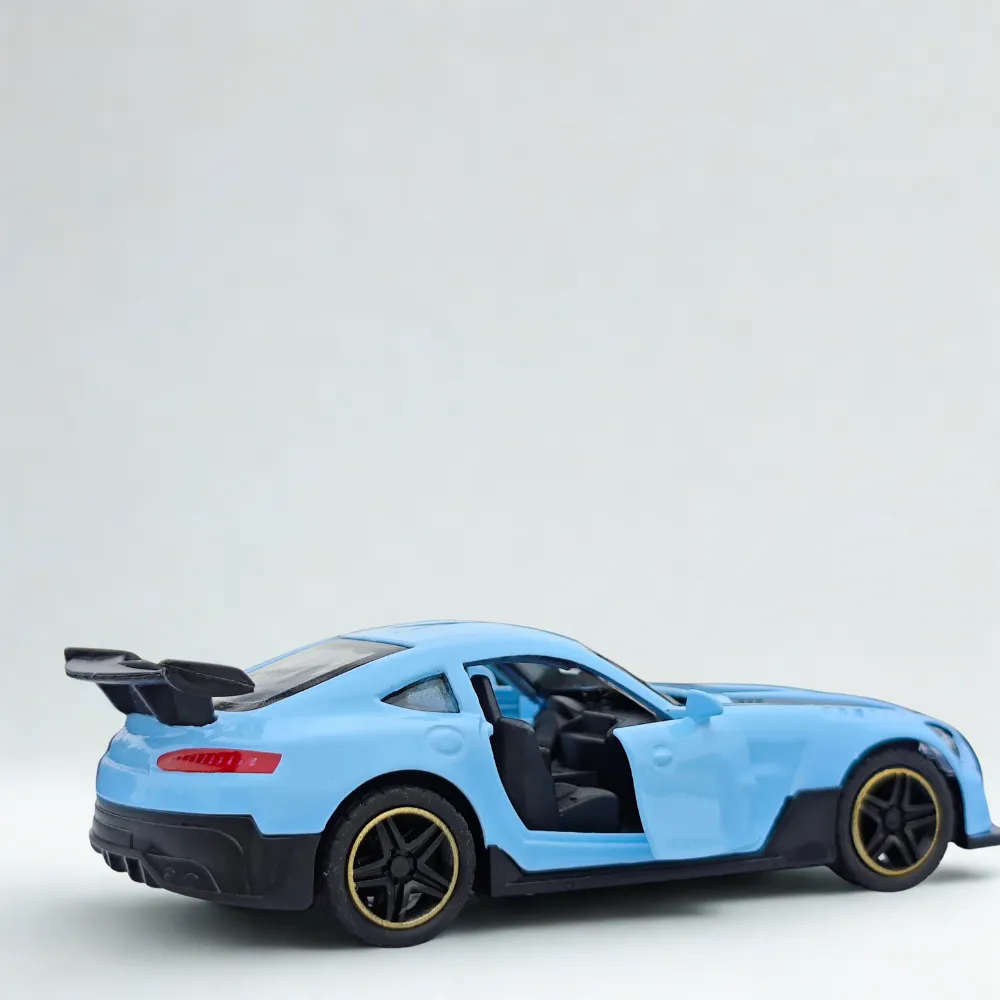Experience the thrill of German engineering with this Mercedes-AMG GT R inspired die-cast model car. Designed with precision, this miniature showcases sporty aerodynamics, a wide body, and a rear spoiler for a performance-driven look. Finished in an eye-catching blue shade, it’s perfect for collectors, display shelves, or gifting to supercar fans.