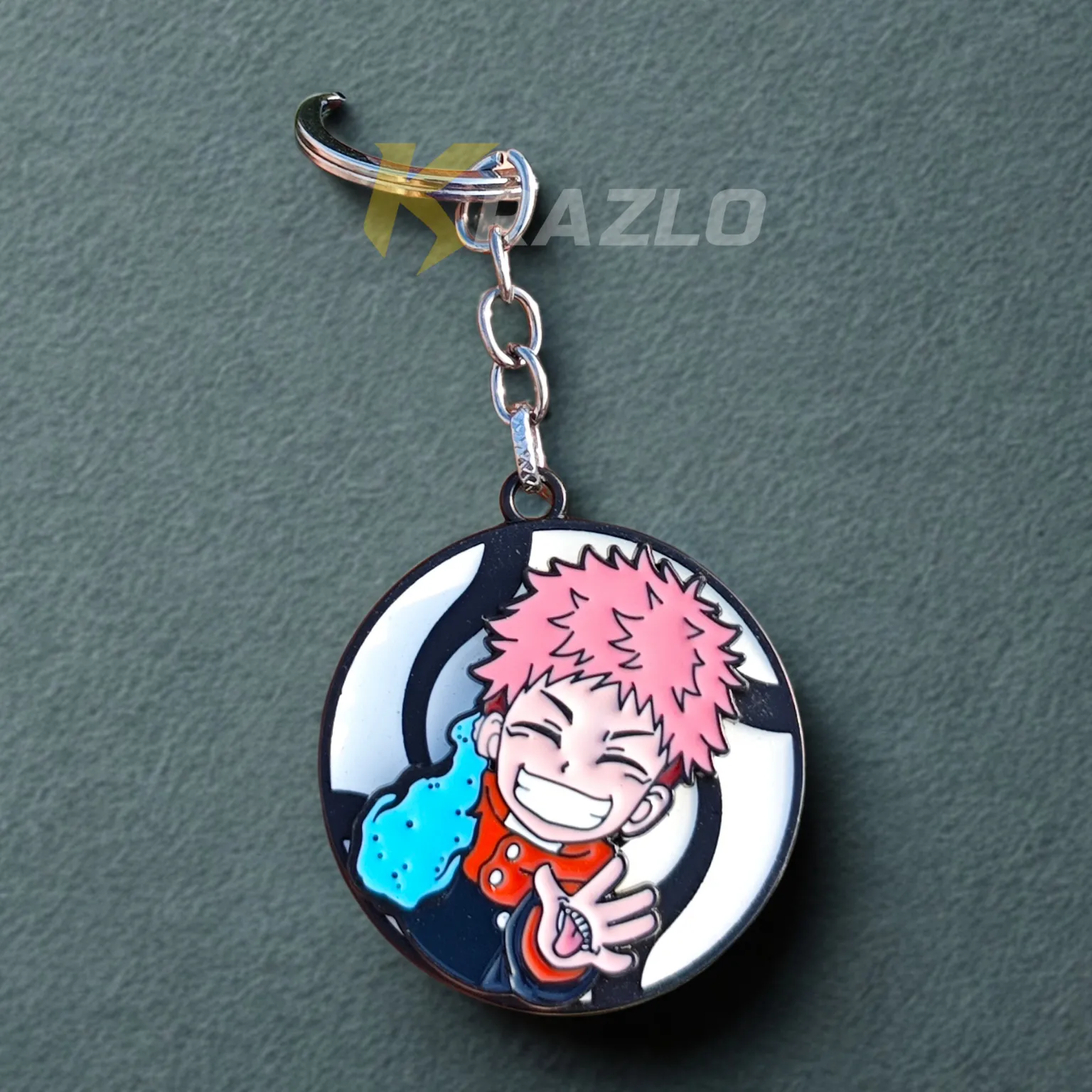Its solid weight speaks to the immense cursed energy it contains. The keychain is expertly sculpted to capture the moment of possession: the sorcerer’s signature spiky pink hair is topped with sinister black curse marks, and a second pair of menacing, blood-red eyes, rendered in sharp enamel, opens below his own. It’s a symbol of contained chaos, for every fan who has felt a chill run down their spine at the mention of the name Sukuna.