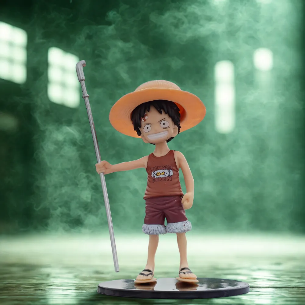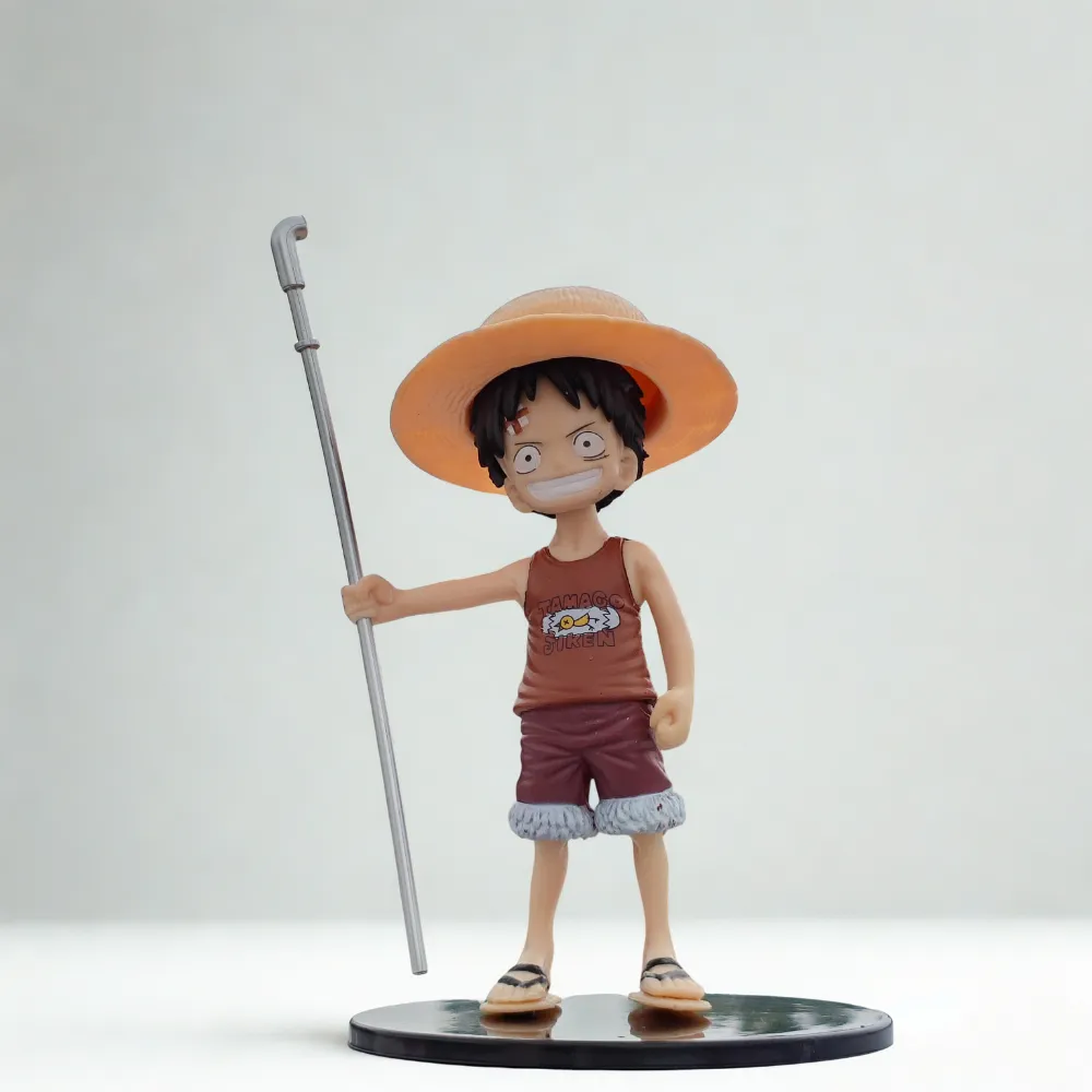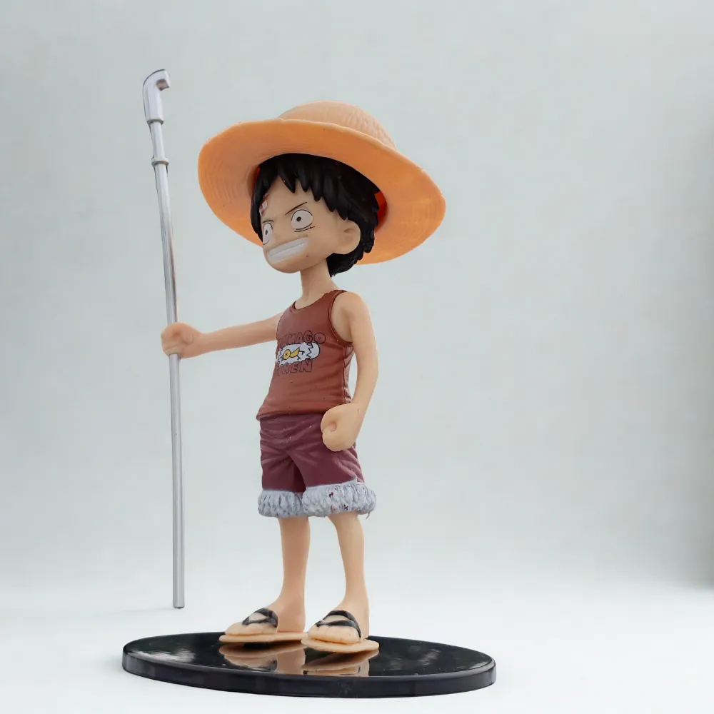 Bring playful energy to your collection with this anime-inspired smiling adventurer figurine. Standing at approximately 13cm, this mini statue features a black-haired kid with a wide mischievous grin, dressed in a casual tank top, shorts with rolled cuffs, and sandals for a fun and carefree look.