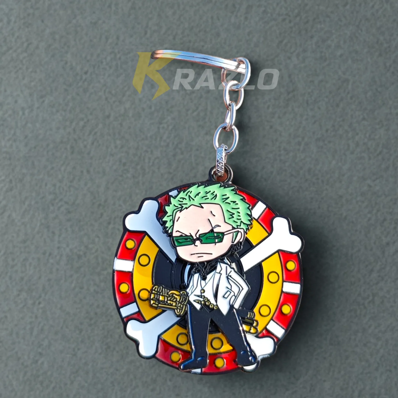 The design captures the swordsman channeling the spirit of a three-headed, six-armed demon, his three legendary katanas rendered with sharp, precise detail. Its substantial weight feels like the hilt of a cursed blade in your hand. Attach this to your keys or gym bag as a symbol of conquering your own demons to achieve unparalleled strength, a reminder that the path to mastery is forged in fire and steel.
